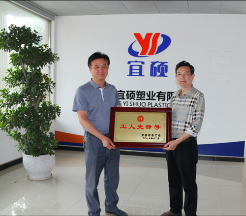 5月(yue)10日, 枝(zhi)江(jiang)市總工會黨組書記、常務副主席李照善為我公司(si)(si)獲(huo)得(de)“宜(yi)昌市工人先鋒號”稱號的PE管材車間乙(yi)班(ban)送來(lai)獎牌!公司(si)(si)總經理(li)劉海燕(yan)接(jie)待并陪(pei)同參觀了(le)我公司(si)(si)的生產(chan)線。 ...