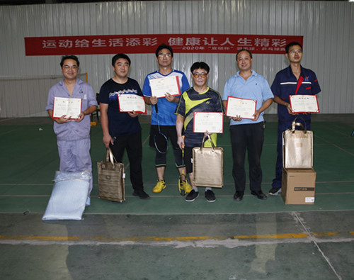 經(jing)過一周八十多場緊張激(ji)烈的角逐,各比賽項(xiang)目前(qian)“三甲(jia)”最終產生。乒(ping)乓球(qiu)男單生(sheng)產(chan)組冠軍被彭(peng)建平摘取,男雙被宋紅兵(bing)、王平(ping)獲得(de),管理(li)組男單被曾(ceng)凡孝摘取;管理(li)組羽毛球男子組、女子組冠軍分(fen)別由張年州、陸昌群獲得,黃克(ke)模、李鳳芹獲(huo)得混雙冠(guan)(guan)軍,男雙冠(guan)(guan)軍被劉海燕(yan)、曾凡孝(xiao)獲(huo)得,周艷、謝(xie)春紅(hong)摘取了女雙冠(guan)(guan)軍;生產組羽毛(mao)球(qiu)男單冠(guan)(guan)軍被詹(zhan)建新摘取,男雙冠(guan)(guan)軍被胡江明、王鑫(xin)波(bo)獲(huo)得。比賽在歡樂和諧的氛圍中(zhong)圓滿結(jie)束。
